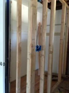The homeowners just bought the house so there was a termite inspection done by the homeowners earlier in the year. I contacted the termite inspection company to come out to test the area again. It turned out to be an old infestation and only in the front of the house, but to be safe, they recommended an exterior treatment. Better to be safe than sorry! It was a very productive week overall. Besides all the design decisions and materials that needed to be specified (I'll write a separate blog post on that), the construction crew did a great job of pulling electrical throughout the house, framing the baths for the new layouts, and getting the plumbing rough-ins started. Here's what it looked like by Day 5...I was very happy with the progress!