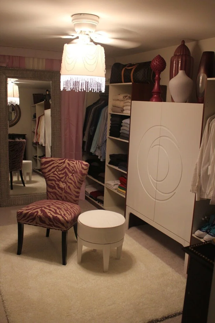Seating makes the space seem so much more luxurious and glamorous and can be in the form of a couch, chaise, ottoman, bench or if you have the room, a vanity area so that you can enjoy some real girly time with your make-up...how fun is that?!