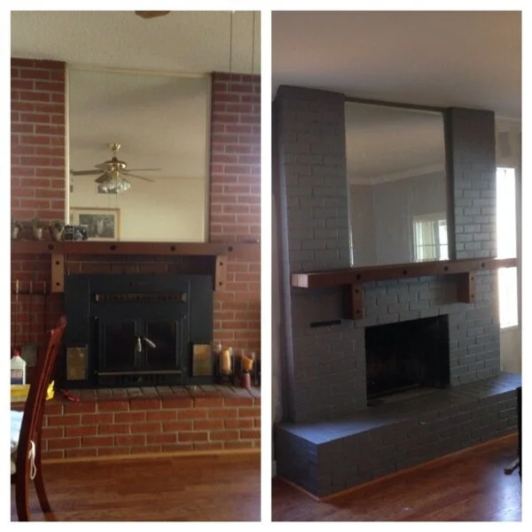 And look at the painted fireplace...looks a lot more contemporary right? The painters pulled out the big, bulky fireplace insert to paint the brick and now I don't want it to be replaced. The fireplace looks like it lost 50 lbs. because it did...I'll just put a standing screen in front of the firebox and call it a day! Are you shocked that the homeowners never used the fireplace once in 13 years?!